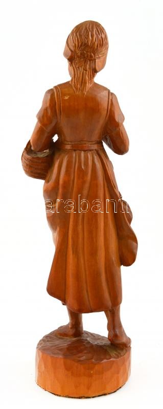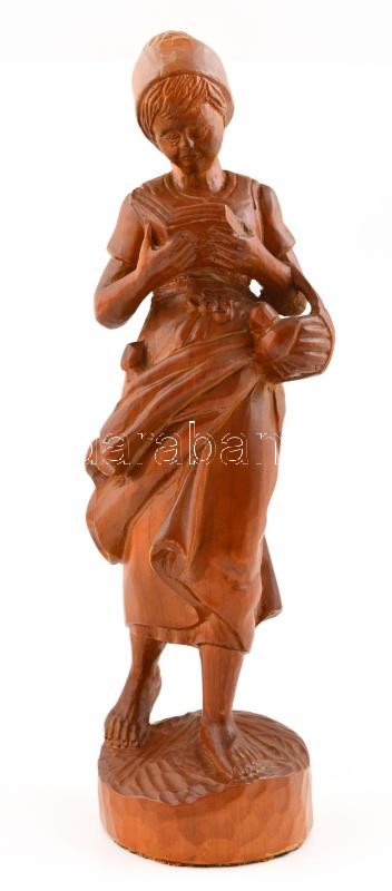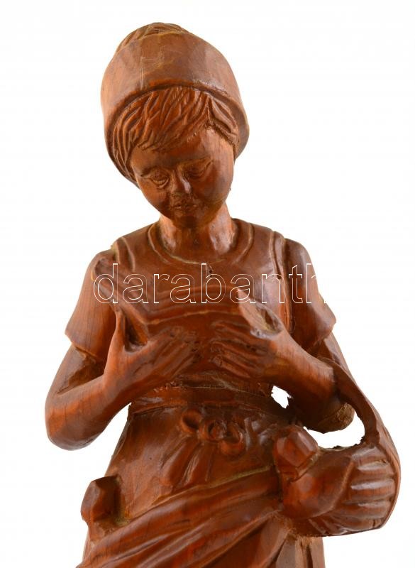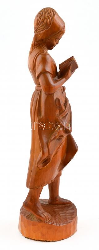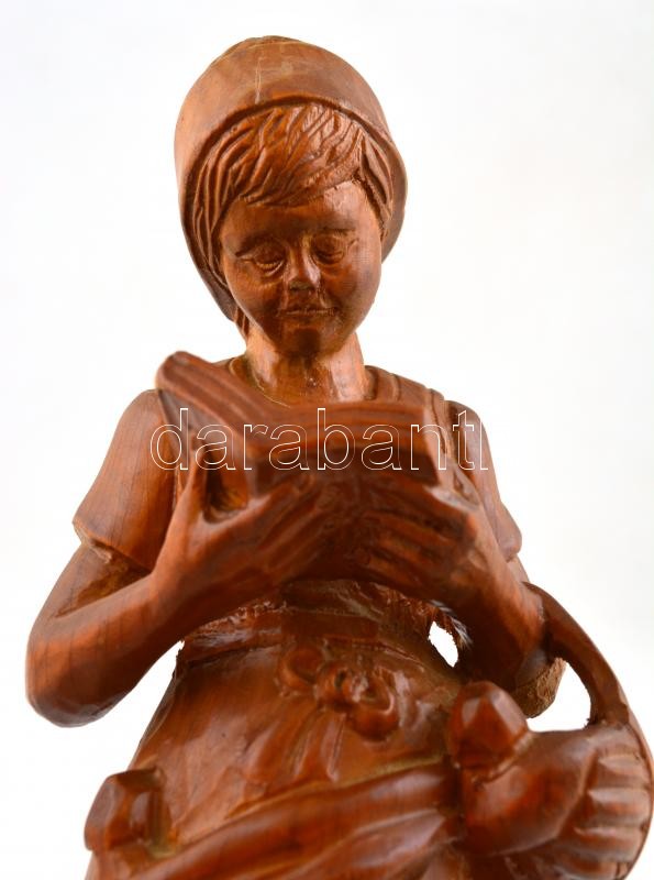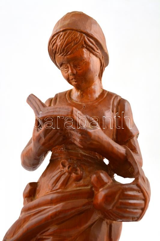 Olvasó parasztlány. Faragott, lakkozott fa. Jelzés nélkül: 32 cm