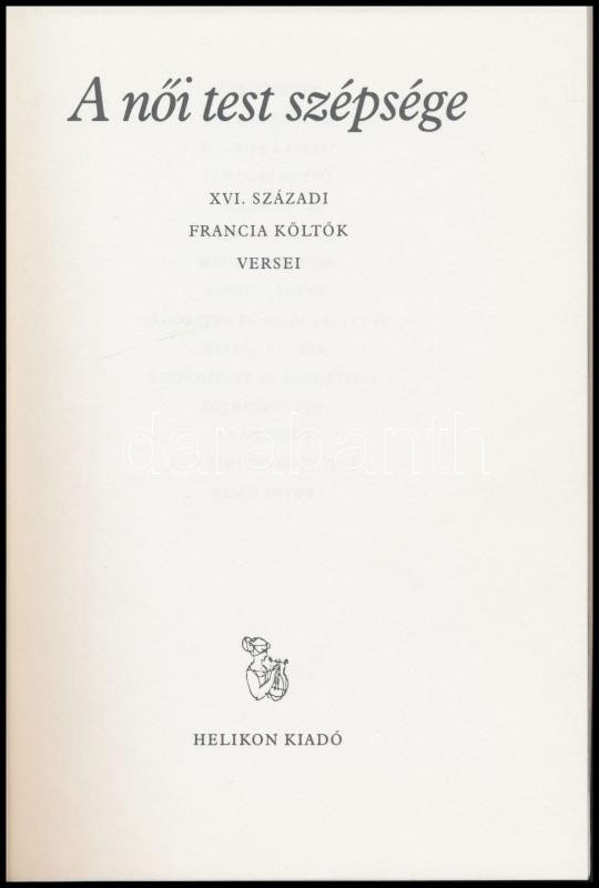 A női test szépsége. XVI. századi francia költők. Bp.,1984,Helikon. Kiadói kartonált papírkötés, kiadói papír védőborítóban.