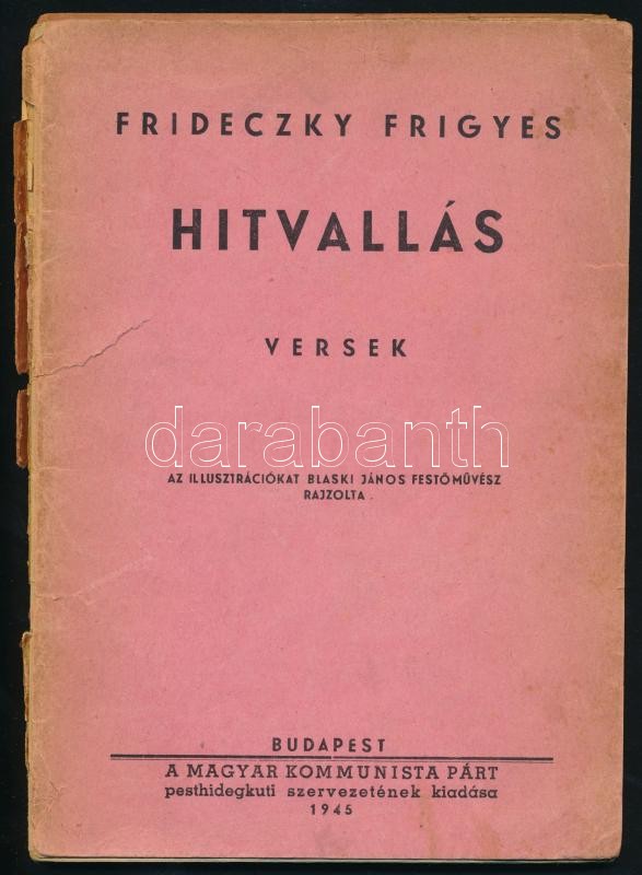 Frideczky Frigyes: Hitvallás. Versek. Bp., 1945, Magyar Kommunista Pá... https://www.darabanth.com/en/369-Online-auction/369.0/Books/Books-Other-rarities~1000017/Frideczky-Frigyes-Hitvallas-Versek-Bp-1945-Magyar-Kommunista-Part-pesthidegkuti-szervezete~II2146255