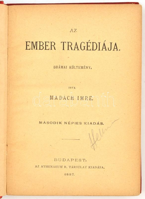 https://www.darabanth.com/en/369-Online-auction/369.0/Books/Books-Other-rarities~1000017/Madach-Imre-Az-ember-tragediaja-Dramai-koltemeny-Masodik-nepies-kiadas-Bp-1887-Athena~II2147071
