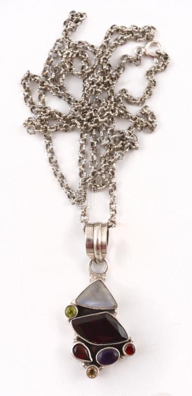 Ezüst(Ag) fantáziaszemes nyaklánc, kövekkel kirakott medállal, jelzett...