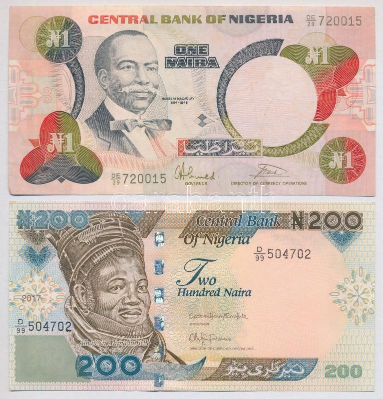 Nigeria 1979-1984. 1 Naira + 2017. 200 Naira C:Unc,XF