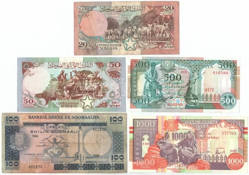 Szomália 1978-1996. 5xklfl 20Sch,50 Sch, 100Sch,500 Sch, 1000Sch T:I,I- Somalia 1978-1996. 5 diff 20,50,100,500,1000 Schillings C:UNC,AU