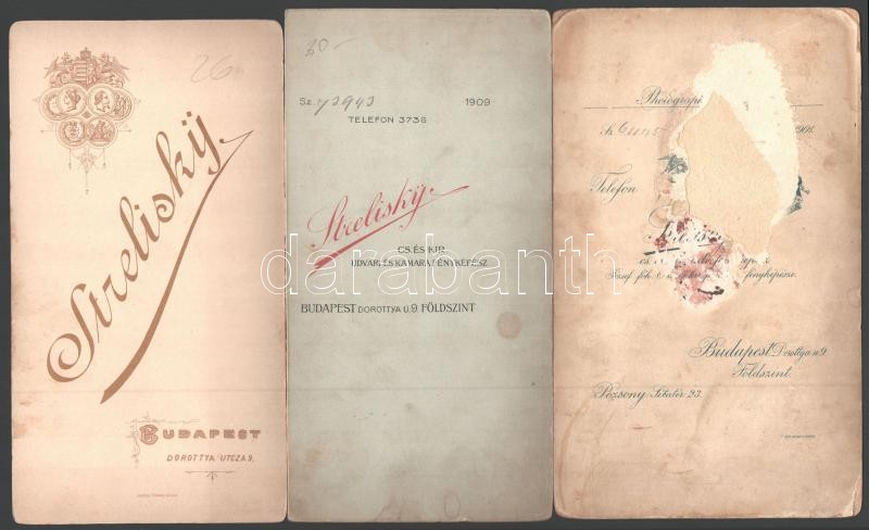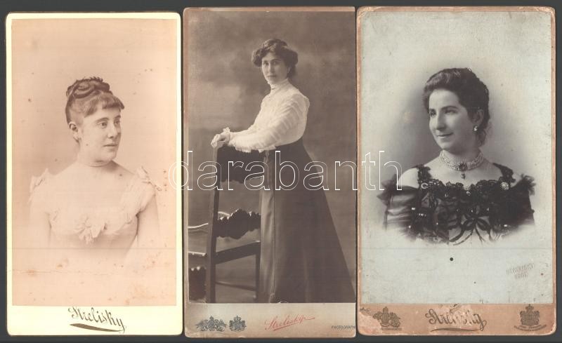 cca 1880-1910 Hölgyportrék, 3 db keményhátú fotó Strelisky műterméből,...