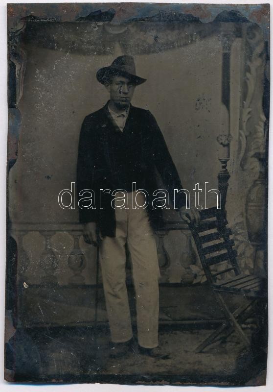 cca 1905 Ferrotípia (vaslemezre készült gyorsfénykép), 9x6,3 cm
