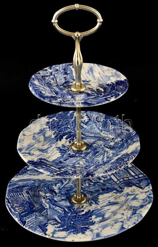 Enoch Wedgwood levonóképes háromszintes kínálótál, jelzett, hajszálrepedésekkel, m: 35 cm