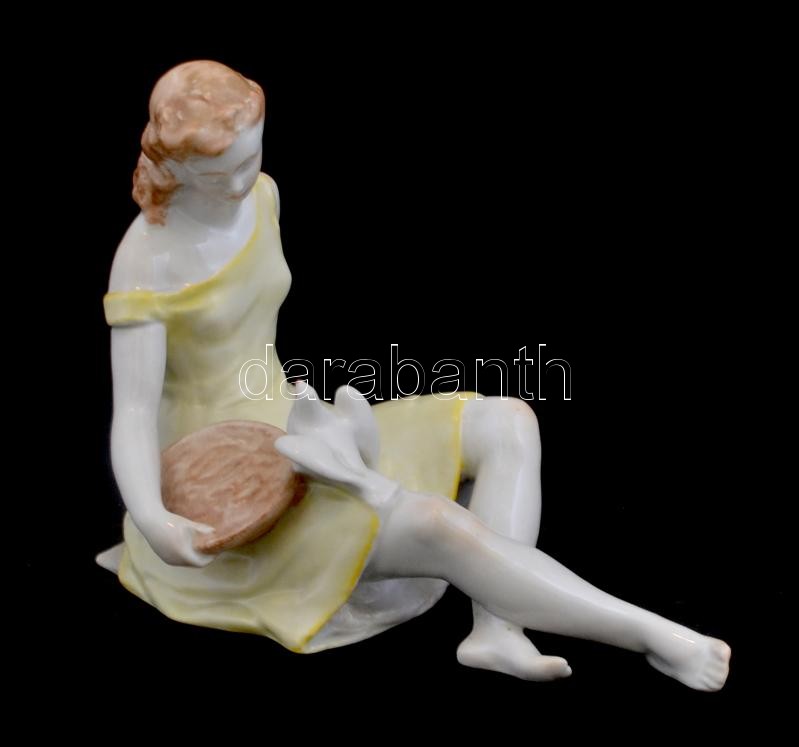 Kispesti Porcelángyár (Drasche) lány galambbal, kézzel festett hibátla...