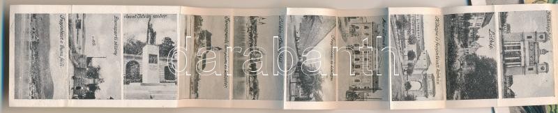 1949 Vác, virágcsokros üdvözlő leporellólap, belül: vasútállomás, fegy...