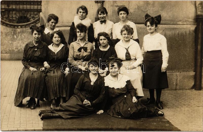 Description: Budapest, Országos Hadi Gondozó Hivatal Munkácsy utcai utókezelő gyógyintézete, ápolónők csoportképe, hátoldalon aláírva / WWI K.u.K. military hospital's nurses. group photo