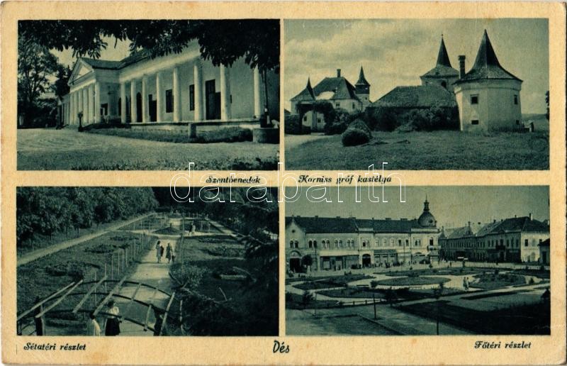 1943 Dés, Dej; Sétatér, Fő tér, üzletek, Korniss kastély Szentbenedeke...