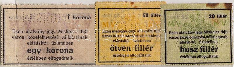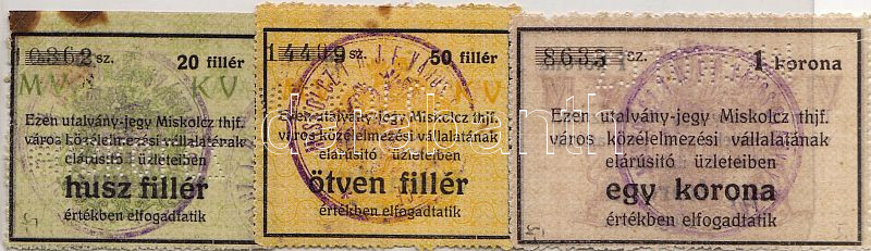 Dátum nélkül Miskolc 20f perforálás fordítva, 50f perforálás normál, 1K perforálás fordítva T:I foltos, ill. kis szakadás