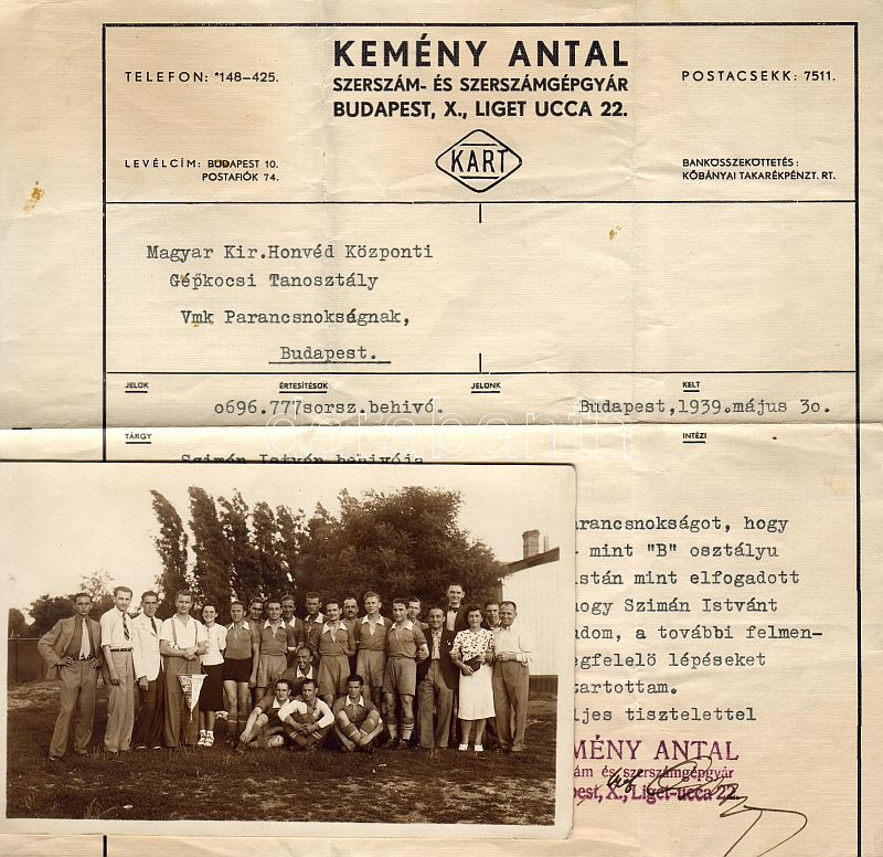 https://www.darabanth.com/en/37-Online-auction/37.0/Postcards/~203/Kemeny-Antal-gepgyar-futballcsapata-kepeslapplusfejleces-papir~II72701