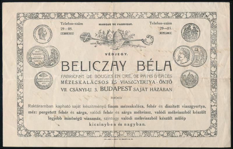 https://www.darabanth.com/en/370-Online-auction/370.0/Art-and-other-collectibles/Advertisement~500026/1914-Beliczay-Bela-gyertyaonto-fejleces-szamla~II2160737