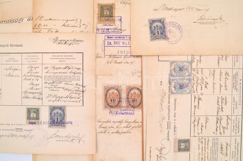 10 db Okirat Budapest városi okmánybélyegekkel illetékelve