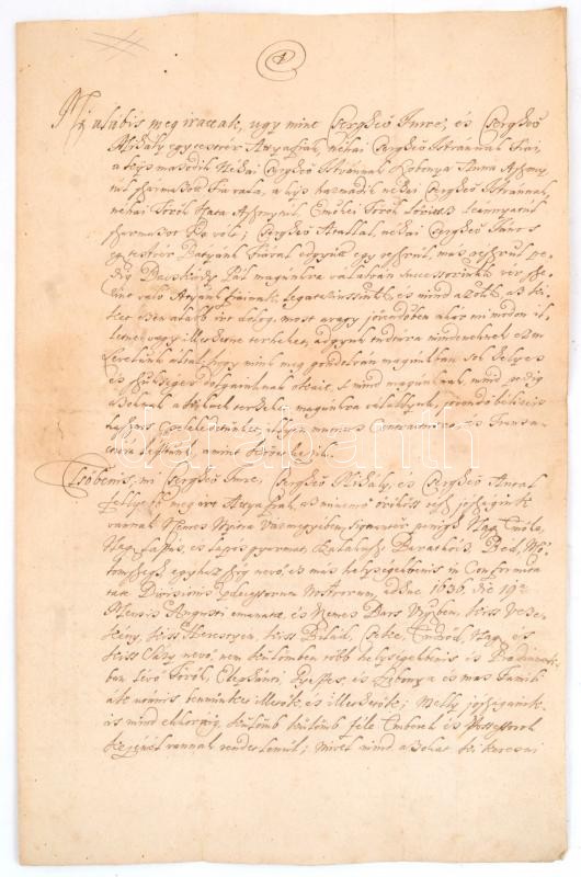 1739 Adásvételi szerződés Nádasy János, és a Csergheö család tagjai kö...