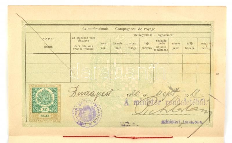 1920 Népköztársaság feliratos útlevél, áthúzva királyságra./ People...