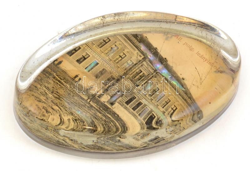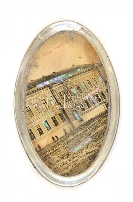 Állami Polgári Leányiskola levélnehezék, karcolásokkal, 11×7 cm