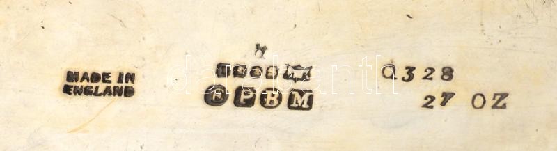 Ezüstözött, feliratozott fém italos palack, kulcs nélkül, jelzett, kis horpadásokkal, m: 21×12 cm