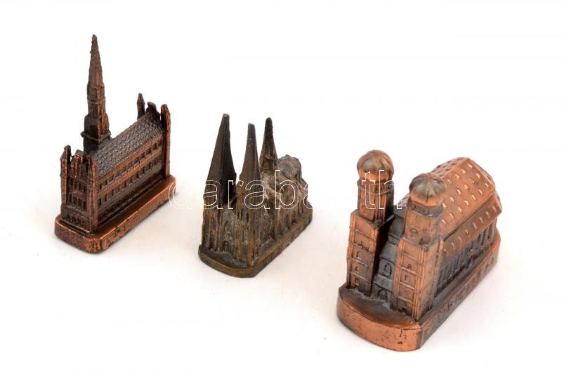Frauenkirche München, kölni dóm, brüsszeli városháza, 3 db fém miniatű...