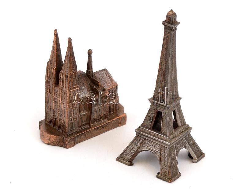 Kölni dóm és a párizsi Eiffel-torony, 2 db fém miniatűr, m: 6 és 8 cm