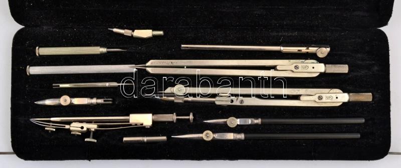 Précision körzőkészlet eredeti tokjában (Juszt Gyula látszerész), hián...