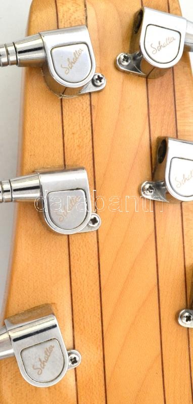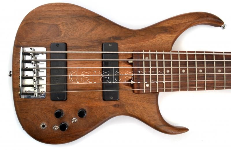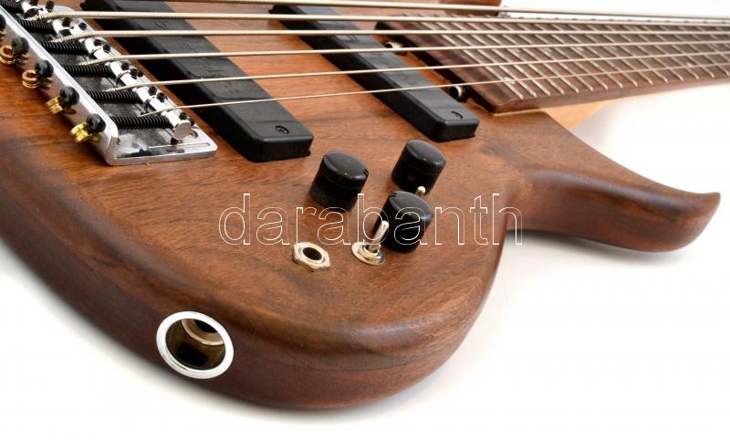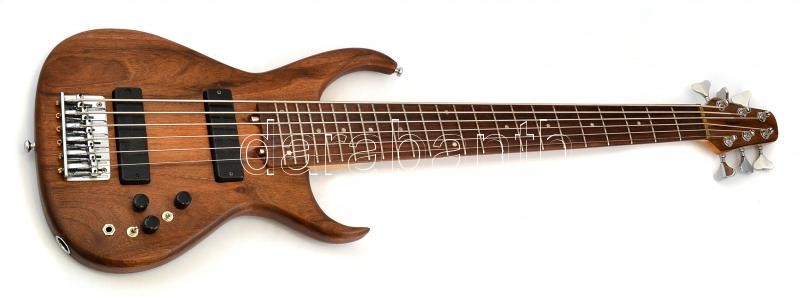 1997 Branco Radulovic 6 húros basszusgitár, kézzel készített, sorszámozott (00320/97), mahagóni és diófa test, laminált jávorfa nyakkal, a fej elején diófa betéttel, dupla tekercses Bartolini hangszedők, aktív elektronika hangszedőkkel használhatók sorban, párhuzamosan és single coil módban, Schaller hangolókulcsokkal, Cort Electric Guitars tokban, a tok javított, kis javítással a gitártest alsó szarván, lepattanással a gitártest hátán, az elektronikai fedlapon egyébként jó állapotban, h: 110 cm, 46x31 cm.
