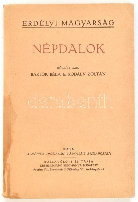 Bartók Béla-Kodály Zoltán: Népdalok. Erdélyi magyarság. Bp.,1987. Zeneműkiadás. Reprint kiadás. Kiadói papírkötés, kopottas állapotban.