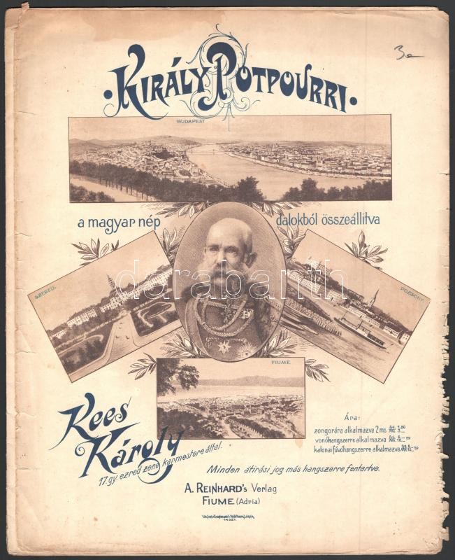 cca 1910 Királyi Potpourri. Kees Károly 17. gy. ezred zene karmestere által. É.n., Fiume, A. Reinhard's Verlag. Kotta. 22p. Foltos, szakadt, lapok kijárnak.