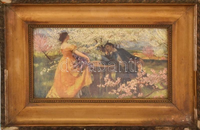 Csók István (1865 - 1961). A tavasz ébredése. Nyomat, sérült üvegezett fa keretben, 14×24 cm