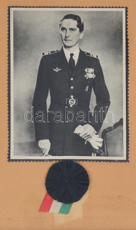cca 1942-1943 Horthy István nyomtatott portréja, papír, gyászszalaggal...