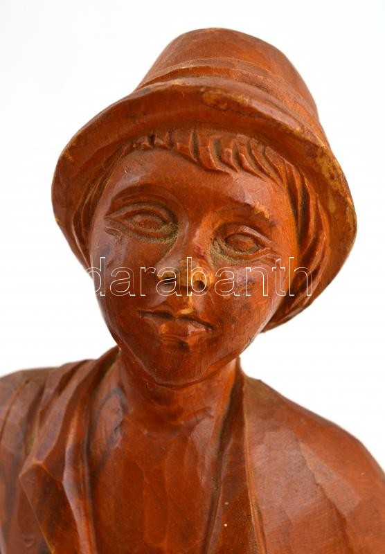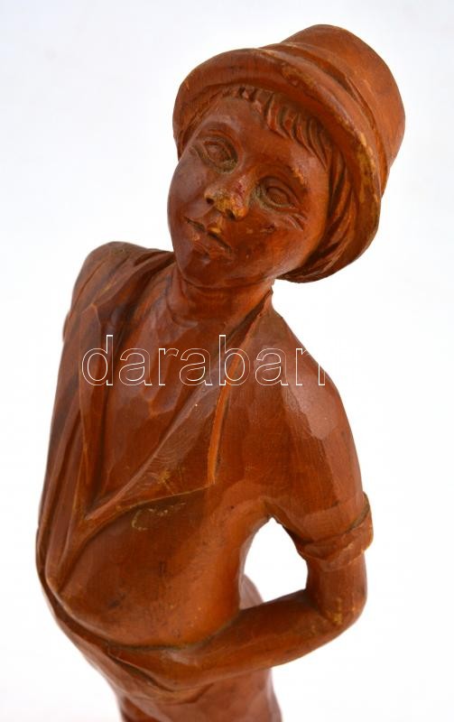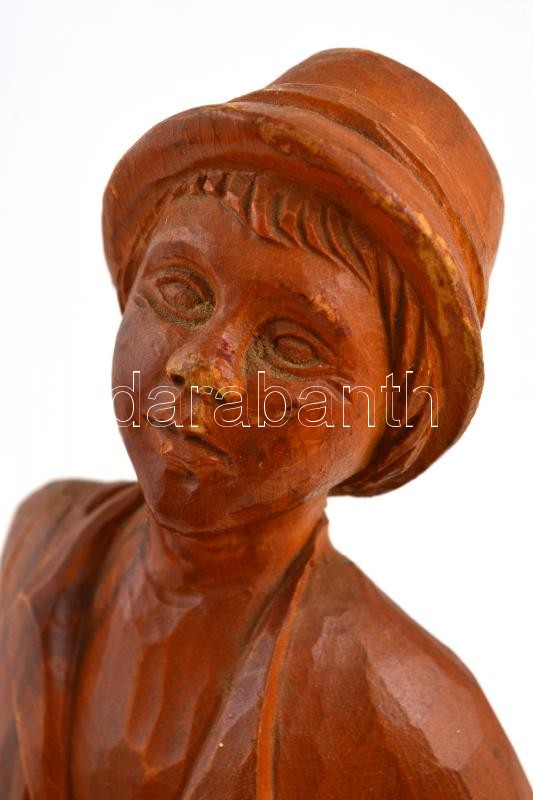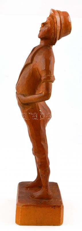Jelzés nélkül: Legényke. Faragott fa szobor. 36,5 cm