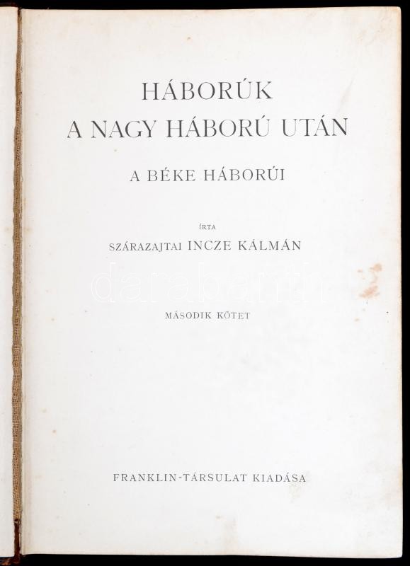 Szárazajtai Incze Kálmán: Háborúk a nagy háború után, A béke háborúi I... https://www.darabanth.com/en/370-Online-auction/370.0/Books/Books-Military~1000006/Szarazajtai-Incze-Kalman-Haboruk-a-nagy-haboru-utan-A-beke-haborui-II-kotet-Bp-193~II2125187