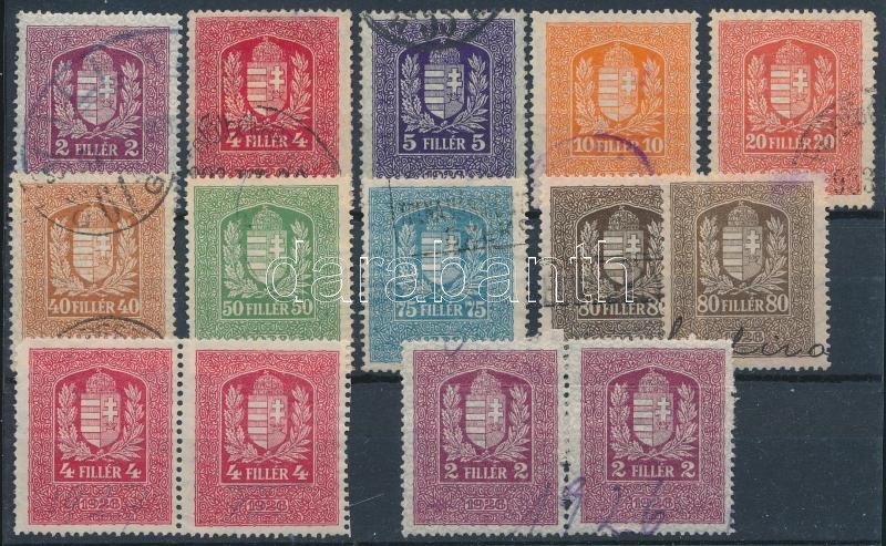 24 illetékbélyeg, közte 3 db lakásügyi és 4 db váltó