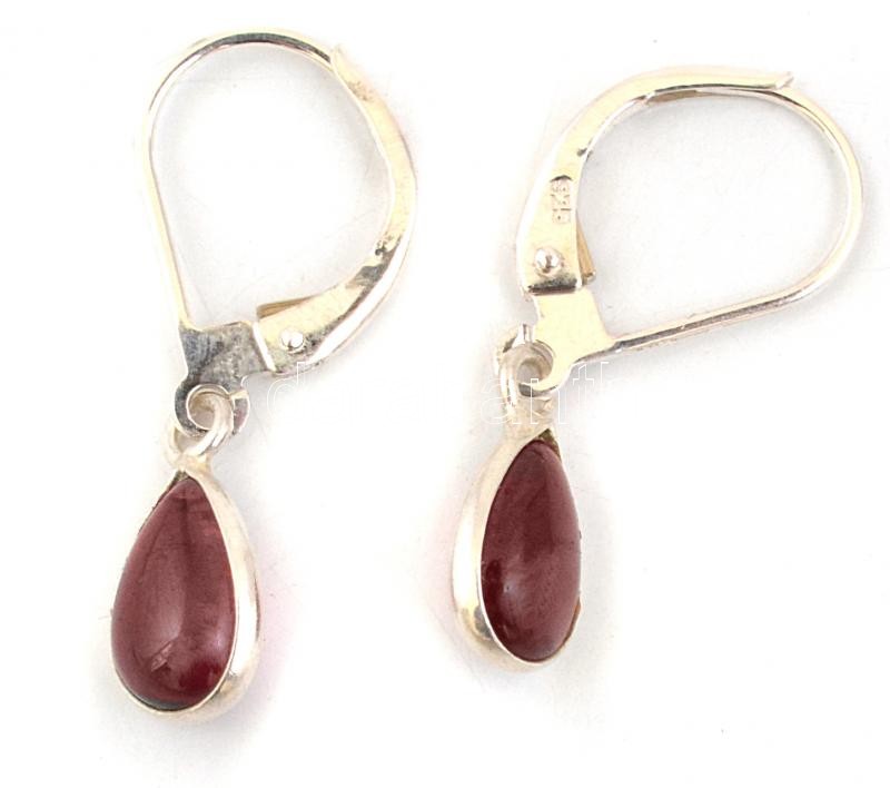 Ezüst(Ag) fülbevalópár, gránát díszítéssel, jelzett, h:2 cm, bruttó: 1,2 g