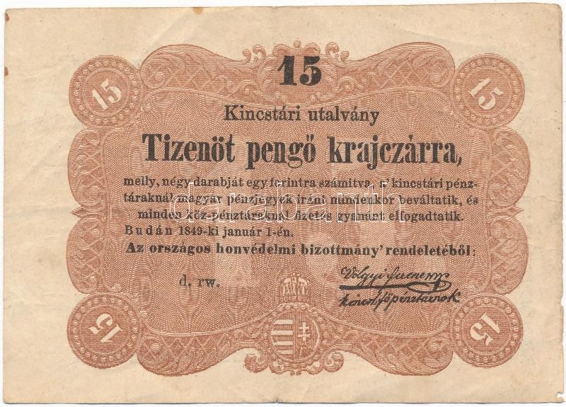 1849. 15Kr "Kincstári utalvány" T:III Adamo G102
