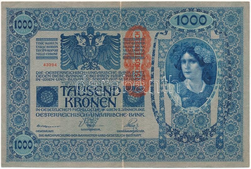 https://www.darabanth.com/en/370-Online-auction/370.0/Numismatics/Hungarian-Banknotes~2000007/1902-1000K-piros-Deutschosterreich-felulbelyegzessel-mindket-oldala-nemet-TII-~II2153581