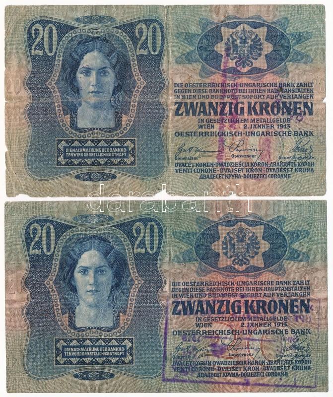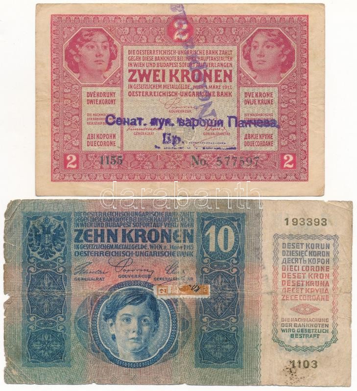 https://www.darabanth.com/en/370-Online-auction/370.0/Numismatics/Hungarian-Banknotes~2000007/1913-20K-2x-szerb-es-felismerhetetlen-felulbelyegzessel-plus-1915-10K-cirill-betus-felulbely~II2153840