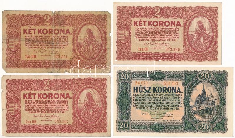 1920. 2K "2aa" (3x) + 20K sorszámok közt pont T:II-III- Adam...