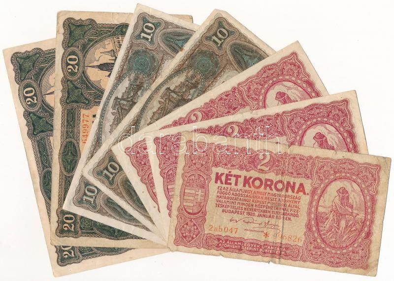 https://www.darabanth.com/en/370-Online-auction/370.0/Numismatics/Hungarian-Banknotes~2000007/1920-2K-3x-plus-10K-2x-plus-20K-2x-Tvegyes-Adamo-K71-K14-K21~II2154362