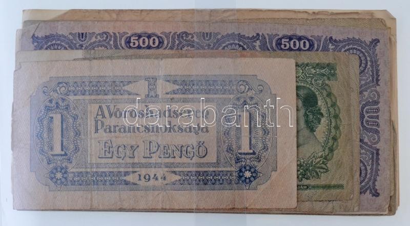 1930-1946. 37db-os vegyes magyar pengő bankjegytétel, benne "A Vö...