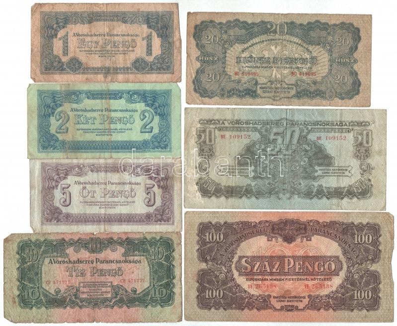 1944. 1P + 2P + 5P + 10P + 20P + 50P + 100P " A Vöröshadsereg Parancsnoksága" T:III-IV Adamo P41A,P42,P43,P44,P45,P46,P47