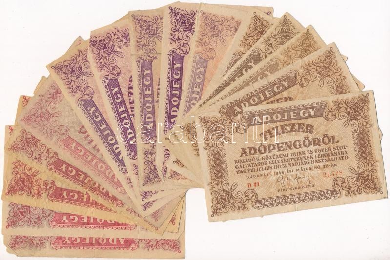 1946. 10.000AP (5x) + 100.000AP (5x) + 1.000.000AP (5x) mind sorszámozott, közte fordított címeres is T:vegyes