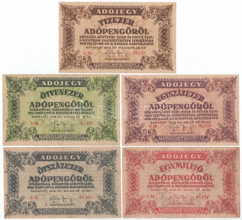 1946. 10.000AP + 50.000AP + 100.000AP + 500.000AP + 1.000.000AP mind sorszámozott T:II,III