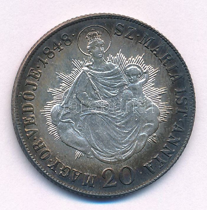 https://www.darabanth.com/en/370-Online-auction/370.0/Numismatics/Hungarian-coins-and-coins-with-Hungarian-mint-marks~2000008/1848KB-20kr-Ag-V-Ferdinand-T2-patina-juszt--Hungary-1848KB-20-Kreuzer-Ag-Ferdinand-V-CXF-~II2160210