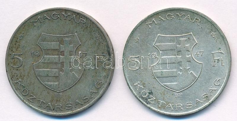 1947. 5Ft Ag "Kossuth" (2x) T:3 patina Adamo F8.1