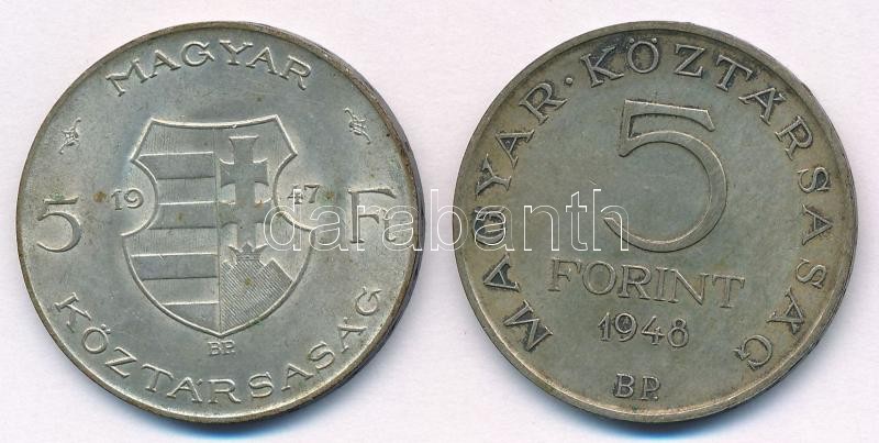1947. 5Ft Ag "Kossuth" + 1948. 5Ft Ag "Petőfi" T:2...
