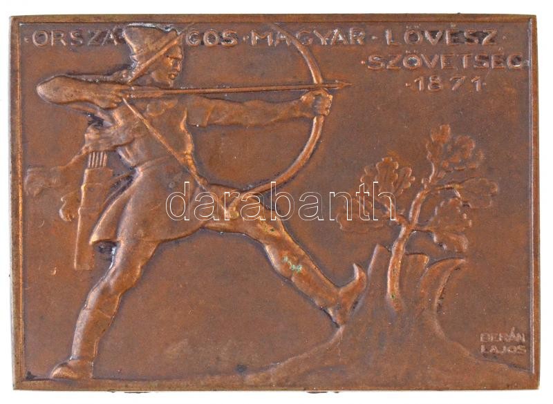Description: Berán Lajos (1882-1943) 1940. "Országos Magyar Lövész Szövetség 1871" fém emlékplakett, hátoldalán "Országos Bajnoki Céllövő Versenyek Budapest 1934.X.24-28." gravírozással és hátoldalán "BERÁN N. BPEST" gyártói jelzéssel (70x50mm) T:2