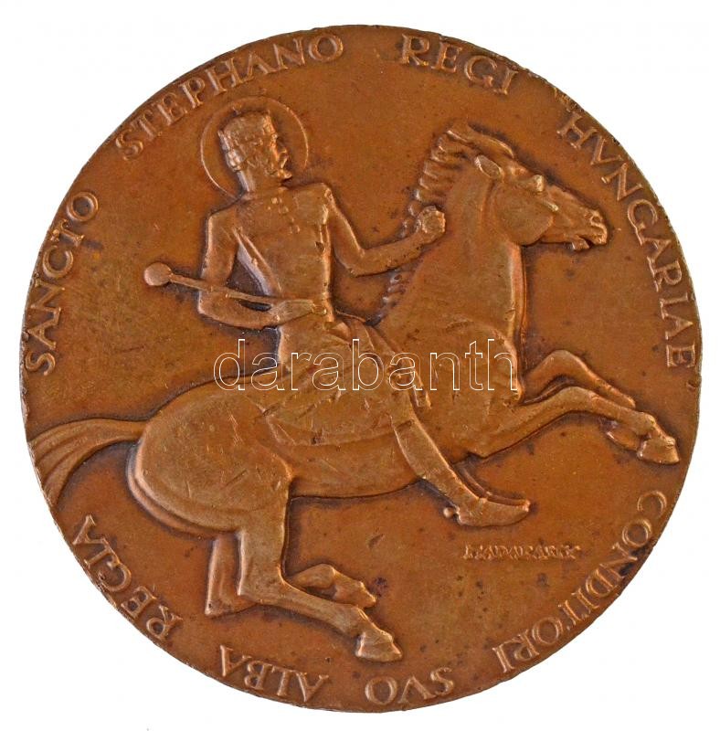 Madarassy Walter (1909-1994) 1938. "Székesfehérvári Szent István" Br emlékérem. "SANCTO STEPHANO REGI HVNGARIAE - CONDITORI OVS ALBA REGIA / 1038-1938" (215,29g/76mm) T:2- ph. / Hungary 1938. "St. Stephen of Székesfehérvár" Br medallion. Sign.: Walter Madarassy (215,29g/76mm) C:VF edge error HPII 1657.