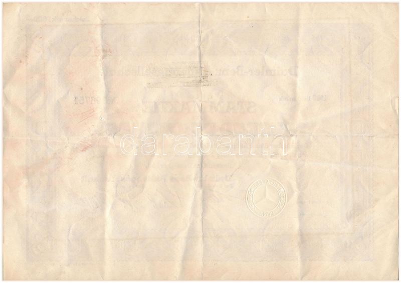 Description: Német Harmadik Birodalom / Stuttgart 1941. "Mercedes Daimler-Benz" részvénye 1000M-ról, szárazpecséttel T:III beszakadás
