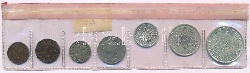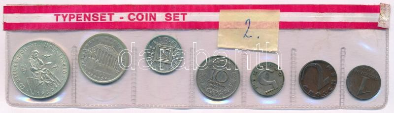 Ausztria 1925-1936. 1gr - 2Sch (7xklf) "Typenset (típus sor)" lezárt fóliatokban, 1/2 - 5 - 10Sch Ag érmék T:2,2-